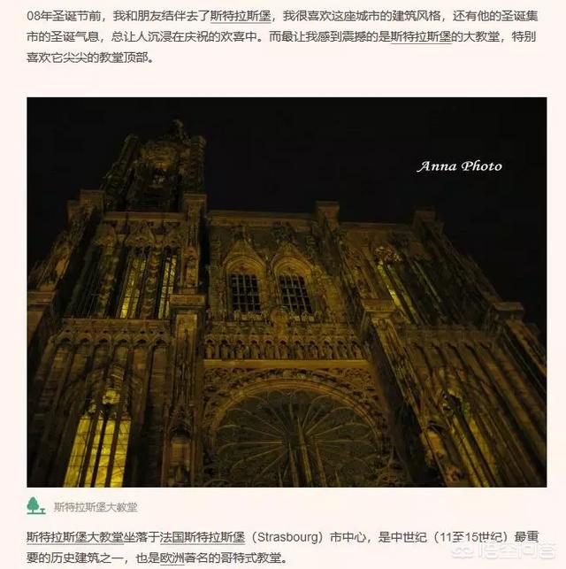 来斯特拉斯堡,怎能不看当地有名的大教堂?庄严肃穆的教堂,夜晚静的瘆人的环境,原本脱口而出的“哥特式建筑”活生生憋成了“尖尖的教堂顶部”。