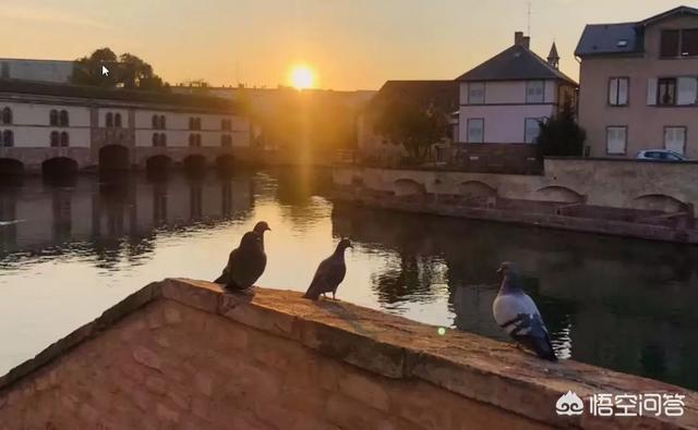 同样是水乡、石头房子和朝阳,法国的斯特拉斯堡就有别样的风光。清晨看日出,在几百年历史的河道小桥上,心满意足地喂饱了鸽子。