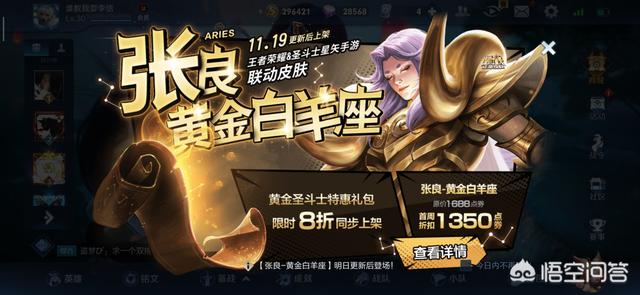 众所周知,王者荣耀已于19日上架了传说级皮肤黄金白羊座圣斗士,该皮肤归法师张良所有。皮肤模型高度还原圣斗士英雄人物,特效更是出众,一技能三形态,三个技能炫酷无比。目前上架商城是折扣价,为1350点券,而官网也是出了礼包盒子,三款黄金圣斗士皮肤同时购买仅需4000多点券,还是非常划算的。