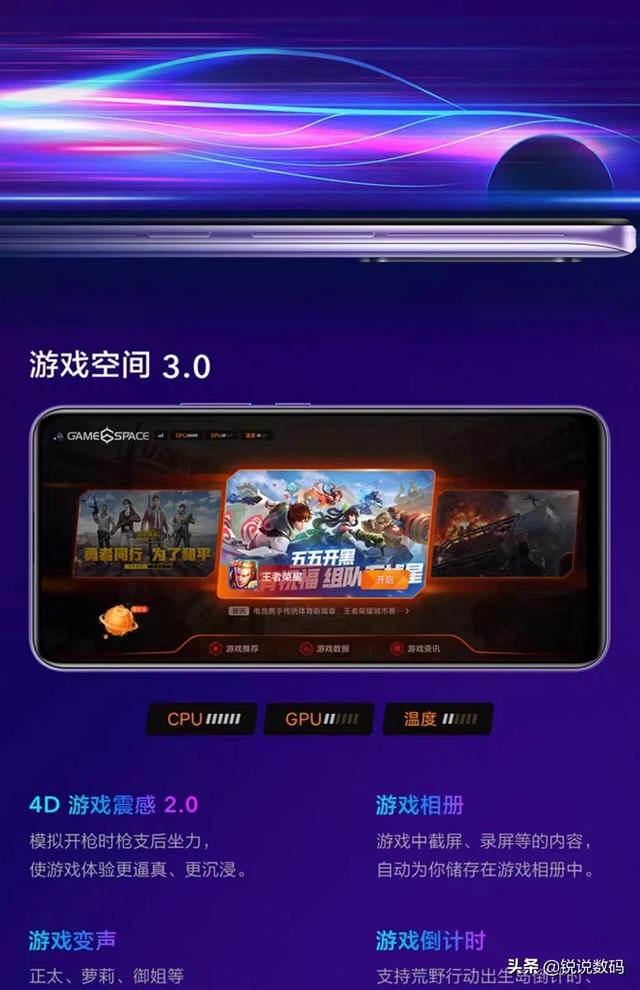 这款手机还带有游戏空间,模拟开枪后坐力,游戏相册截图,记录你的高能时刻,游戏变声器,让沟通更有趣味,游戏倒计时,在倒计时的时候可以切出去处理别的事情