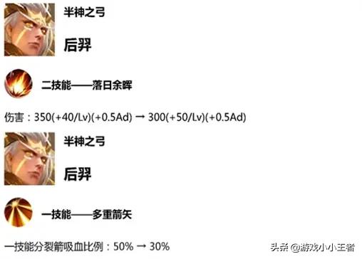 在19年上半年,后羿因为太过于强势,导致了玩家纷纷要求削弱后羿,一个月内后羿被天美砍了六七次,导致了接下来的几个赛季后羿果然是不如以前了,但是这次狂暴技能的调整,后羿将又会重新跃上神坛,落日余晖又将在王者峡谷中闪耀!