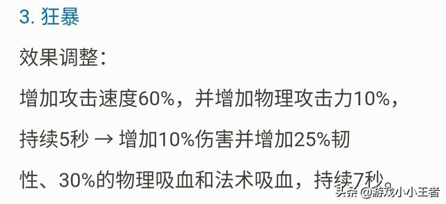 如果说老“狂暴”是一个只适合极少数英雄使用的冷门召唤师技能的话,那么新“狂暴”则成为了很多英雄carry全场的制胜法宝!