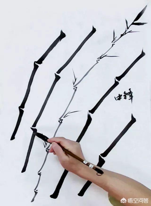 筆墨紙硯準備好以後,用毛筆蘸取適當水分,筆頭蘸墨。一,先畫竹子的竹節主幹,一節一節畫,中鋒用筆,起筆行筆收筆,起筆收筆應有有頓挫,竹節要直且挺,蒼勁有力、有彈性。二,竹節主干畫完,畫輔枝,多少輔枝適當而為,注意交錯,忌平行,主枝和輔枝應有變化,切忌雷同。三,輔枝畫完畫分叉小竹枝,每節竹節的小枝左右錯落開來,一節只能一枝,不可多。四、畫完小枝注意點竹節,點、提用筆即可。竹干非常重要,不可雜亂無章!五,畫完竹干畫竹葉,注意起筆行筆收筆,用筆不能飄而無力,力透紙背的感覺要有。六,竹葉分“個”字,“介”字,“父”字等等,基礎的單位照型,可依據畫面需要,進行疊加錯落,疏密變化等等,畫竹子的方法眾多,基礎的可學鄭板橋,境界格調高的應學習文同、元代吳鎮、倪瓚等畫家的作品!