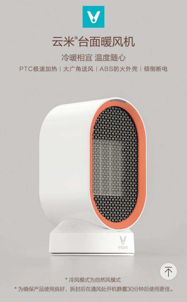 5.第4个推荐是云米台式暖风机,主要在办公室用放在台面上,139元。