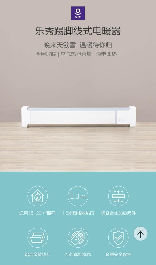 3.第2个推荐的是乐秀踢脚式电暖器749元,这个呢就比较适合面积大一点,大概15~20平方,还可以红外线控制。