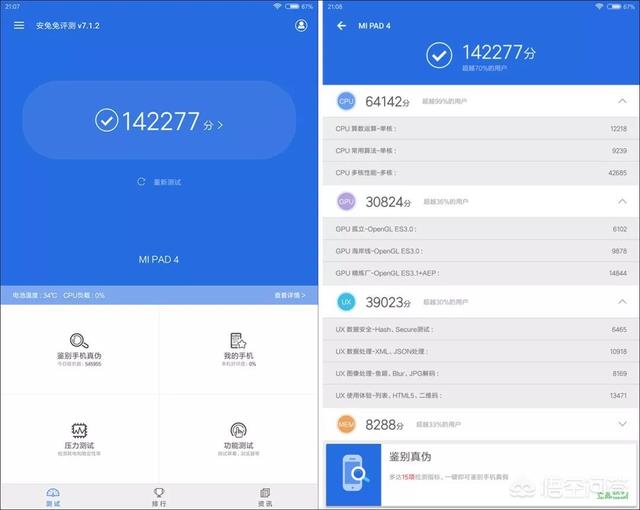 在安兔兔评测(V7)跑分测试中,小米平板4的跑分在14万左右,与其它骁龙660终端相当。需要补充的是,存储方面,小米平板4拥有 3GB+32GB / 4GB+64GB 两版本可选。