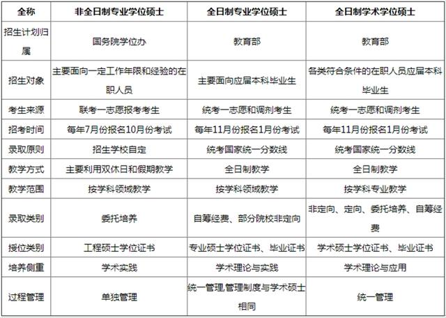 这张表格分别从招生单位、考生划分、招考时间、录取原则、教学情况等多个方面,对于全日制研究生跟非全日制研究生的不同进行了比较详细的划分,希望能够对你有用。