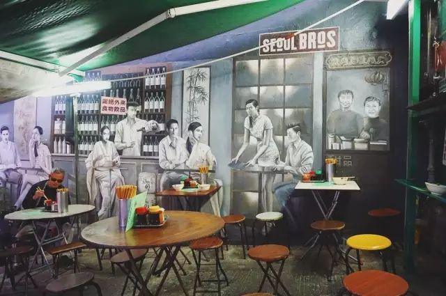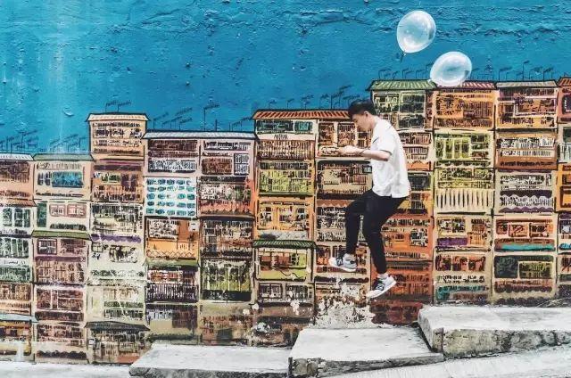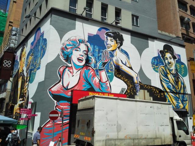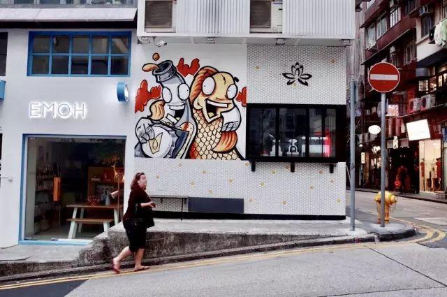 这幅涂鸦壁画在中环的玉叶甜品旁边