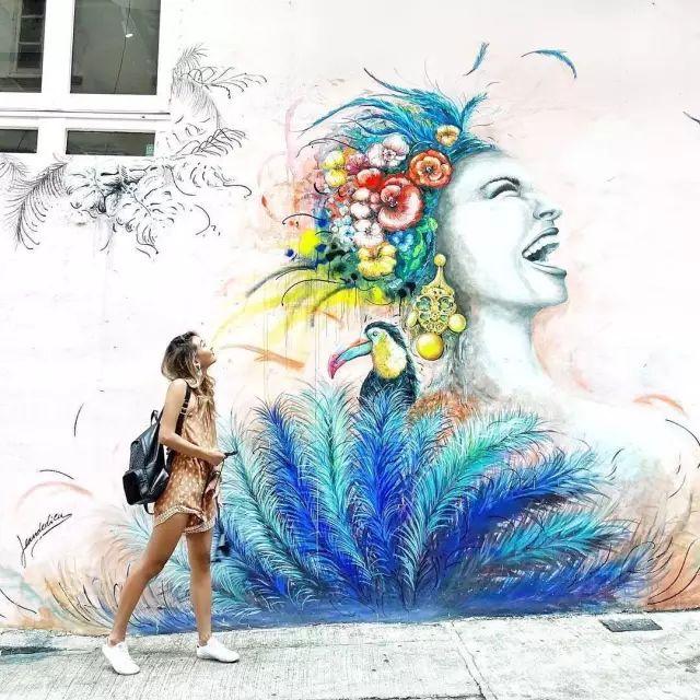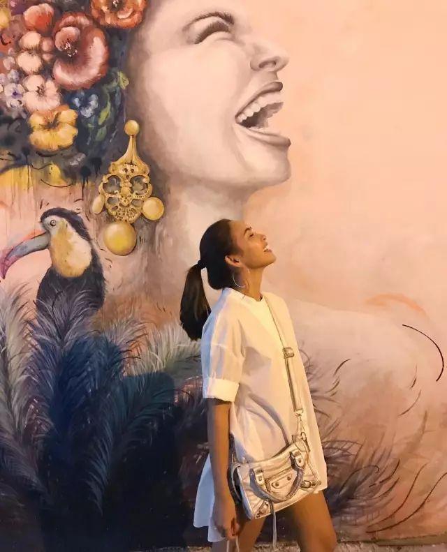 这幅壁画自带“摆拍神器”楼梯和路牌