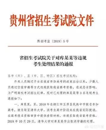 贵州三名考生高考违规,考入清华复旦等校后被取消学籍,月亮姐姐支持这个做法。贵州省招生考试院网站7日发布了关于对学生库某等违规考生处理结果的通报。