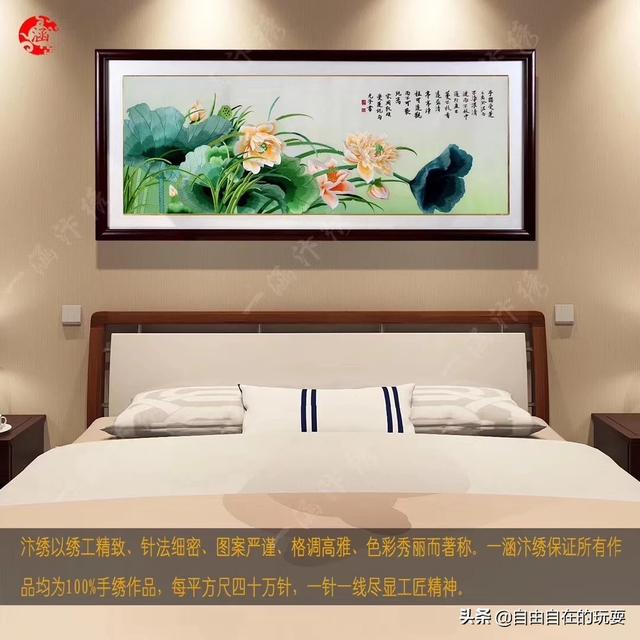 我感觉卧室是自己的私人空间,完全可以按照自己的喜好来,不必征求别人的意见,只要寓意好,都是可以的,也可以选择手工刺绣的荷花,手工刺绣的孔雀手工刺绣的鱼都可以