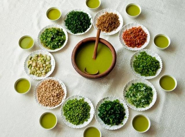 制作擂茶,用一把好茶叶,适量芝麻,几片甘草等,置入擂钵,手握擂棍沿钵内壁顺沟纹走向有规律旋磨,间或钵中间擂击,将茶叶等研成碎泥,即用捞子滤出渣,钵内留下的糊状食物或叫“茶泥”、或称“擂茶脚子”。再冲入沸水,适当搅拌,再佑以炒米、花生米、豆瓣、米果、烫皮等,就是一缸集香、甜、苦、辣于一体的擂茶了。 制作客家擂茶是要科学合理的配料。这除了要用好茶、芝麻为主要原料外,配料可随时令变换。春夏湿热,可采用嫩的艾叶、薄荷叶、天胡荽;秋日风燥,可选用金盏菊花或白菊花、金银花;冬令寒冷,可用桂皮、胡椒、肉桂子、川芎。还可按人们所需,配不同料,形成多种多样多功能的“擂茶”。如加茵陈、白芍、甘草,为“清热擂茶”;加鱼腥草、霍香、陈皮,为“防暑擂茶”。经医学验证,擂茶对常年生活在大山长谷瘴气较重的客家人,有一种独到的驱邪健身功效。君不见客家老翁老妪,精神健旺,少病少痛,这不能说不是得益于常饮客家擂茶。客家人每当劳作回来,一进客门,就要先饮一碗擂茶,再说进食解饥肠事。客家人又常用糯米做糍粑,或用大米做米果(粑粑)当点心。故有俗谚说:“喝擂茶,吃粑粑,壮身体,乐哈哈。”以致说这奇特的客家擂茶是“药食兼佳,味中有味”的“客家保健饮料”。