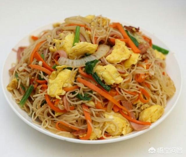 介绍一款美味的炒粉干:洋葱、胡萝卜、鸡蛋、米粉、盐、生抽、花生油。