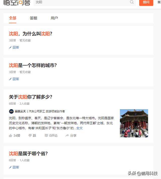 我朋友是做沈阳本地资讯的,所以回答问题就搜索有沈阳关键字的。结果如下。