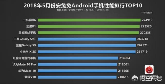 我们看到安兔兔曾经发布的手机性能排行榜,前三名几乎都由骁龙845机型所包揽,而一加手机6更是凭借274910分夺得了性能榜第一名的位置,堪称是上半年的“旗舰机皇”。