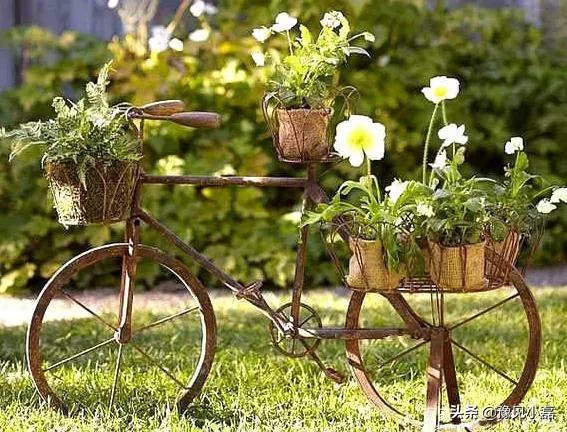 接下来这个漂亮的装饰品你能看出来是什么做的吗?其实是一位老农用咱们农村常见的废旧二八自行车改造而成的。之前我们用这种自行车会拉一些农村的废旧农用物品。但是现在有一种自行车太过于笨重,已经很少有人骑车了,所以被老农巧手做成了这个装饰品。是不是很漂亮?