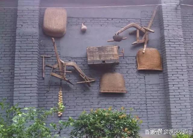 在很多农家乐里面,墙上都有一些装饰品,有的都是一些逼真的谷子或者是其他农作物,我们可以看到下图中一位老农将废弃的一些农具挂在墙上,配合上家里的植物,可以说别有一番风味,很多人城里人去了都觉得新鲜不已!