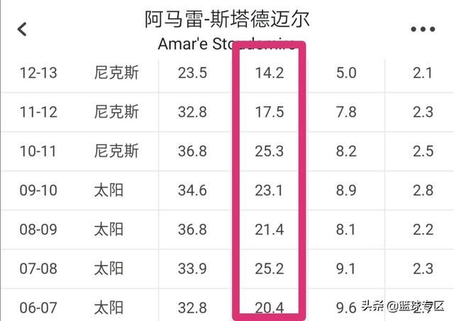 在聊小斯油箱里还有多少油之前,咱们不妨先来看看他近两年的一个状况,年轻时期的小斯无疑是NBA的巨星之一,在06-07至10-11这5个赛季里他场均得分都在20分以上,其中07-08和10-11赛季场均得分更是高达25+,他入选过一阵,也多次进入二阵。