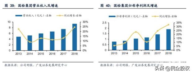 2010年至今,全球检测市场基本保持10%左右的增速,目前最大的四家检测公司市 场占有率在2013年后基本稳定在8%-9%之间。 2018年全球检测市场规模突破1.6万亿元,但是行业增速有所下 滑。 国内检测龙头华测检测市占率逐年提升,国检集团2018年开启并购路程后市占率也开始有所提升,市占率约为1.3%,而国检集团近期收入增速保持在20%以上,高于行业增速,在行业增速逐年提升的情况下市占率也持续提升。