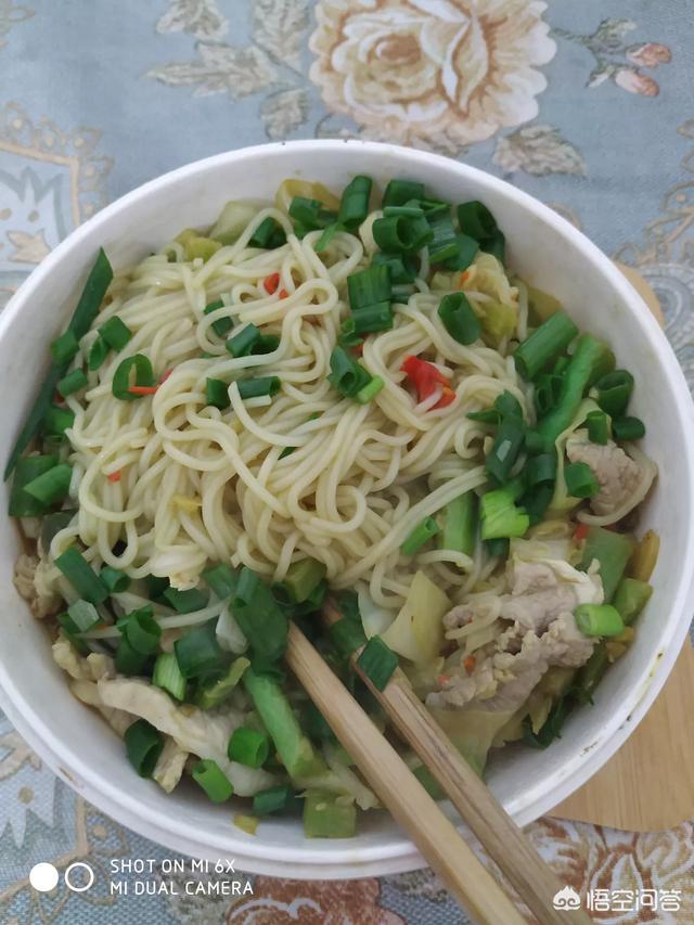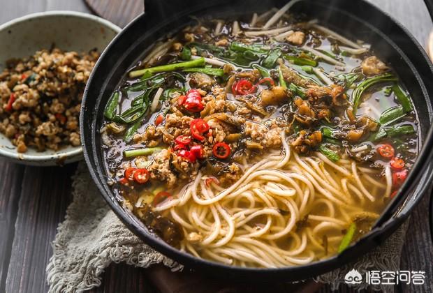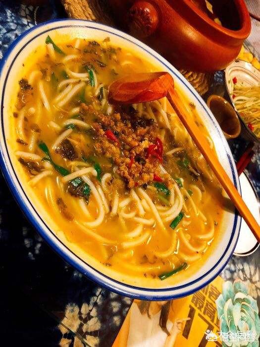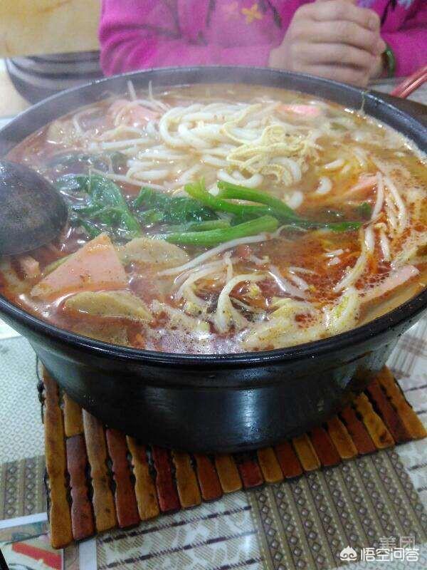 3)把烫好的米线放入高汤,加配料。由于汤有盐味,杂酱鲜香,根本不用再放味精、鸡精调味。一道大锅米线就做好了。
