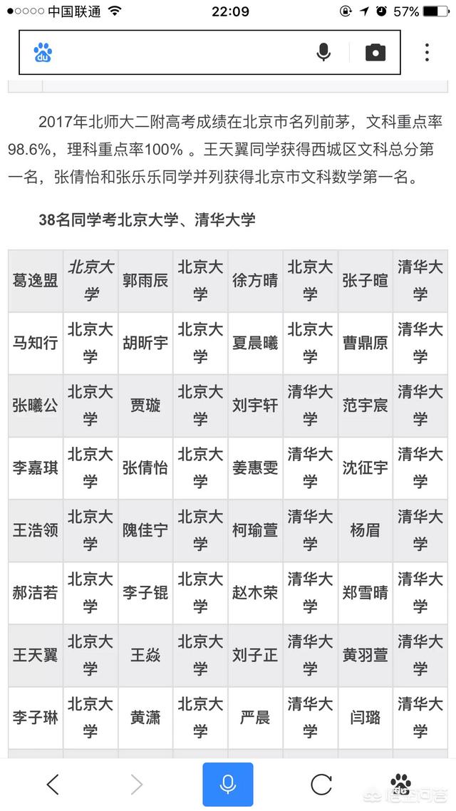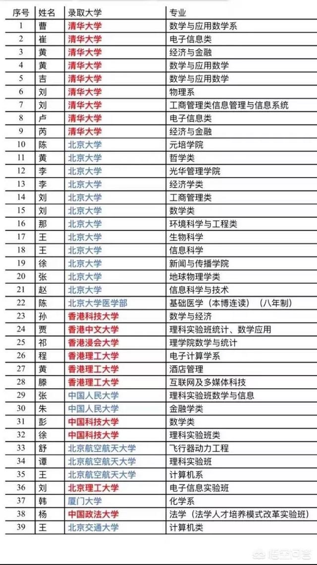 最后放一张同事朋友圈发的,她儿子班上2017年度高考的升学去向表,北师大实验中学