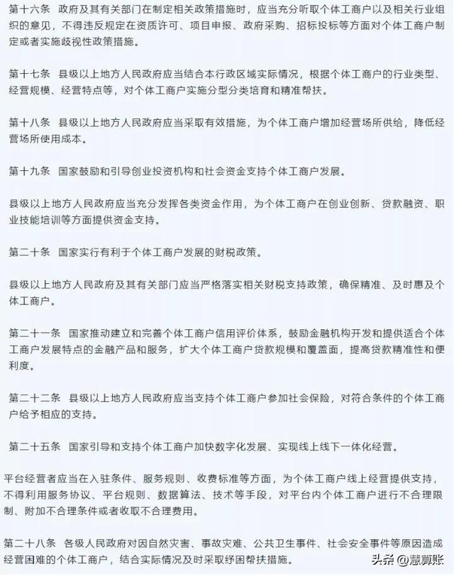 从这些条款中不难看出,国家对于个体工商户的发展支持力度很大,很多之前我们经常能够看到的个体工商户在经营出现的不公正对待,或者说一些限制个体工商户发展的地方,《条例》都做出了相应的规范。