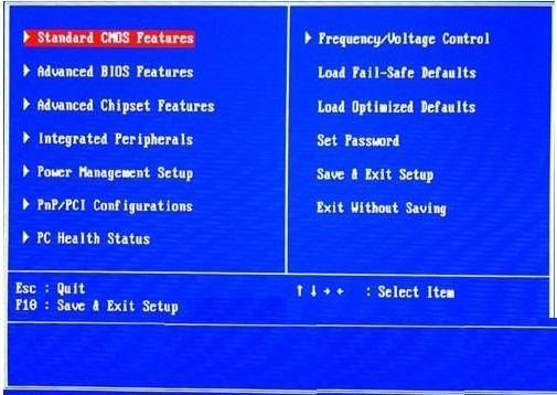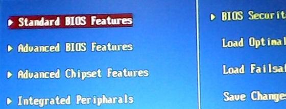 第一步:在CMOS Setup主菜单中选择“Standard CMOS Features(标准CMOS功能设置)”。