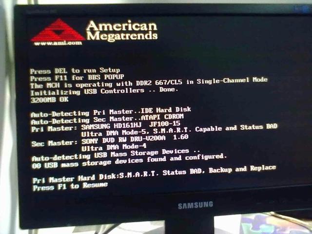 系统硬盘损坏,当在提示“3rd Master HardDisk:S.M.A.R.T. Status BAD Backup and Replace”时,表示系统检测到电脑的第三硬盘损坏,建议你及时备份重要数据,当没有解决这个问题时,也会提示你按F1才能继续。