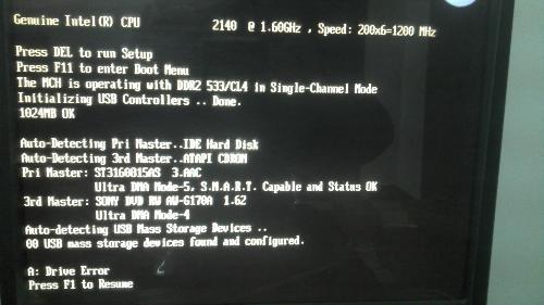 2、实际上没有软驱或者软驱坏了,而BIOS里却设置有软驱,这样就导致了要按F1才能继续。