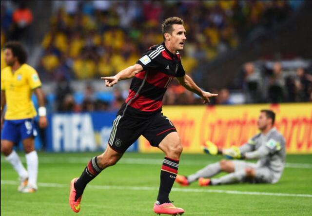 2014年的巴西世界杯,克洛泽在以16球打破了由巴西前锋罗纳尔多保持的15球纪录成为了世界杯历史上的射手王。即便是在韩日世界杯一战成名之后,一些媒体也在批评克洛泽只会头球破门,只会在弱队的身上刷进球数。面对着质疑与误解,克洛泽没有选择去辩解,而是不断苦练去提升自己的射术。克洛泽是两德统一后首位世界杯金靴奖得主。帮助德国队赢得2014年世界杯冠军、一次世界杯亚军、两次世界杯季军及一次欧洲杯亚军、一次欧洲杯季军,他还是足球史上唯一一位连续四届帮助球队打入世界杯四强的球员。