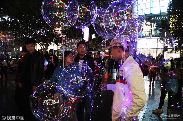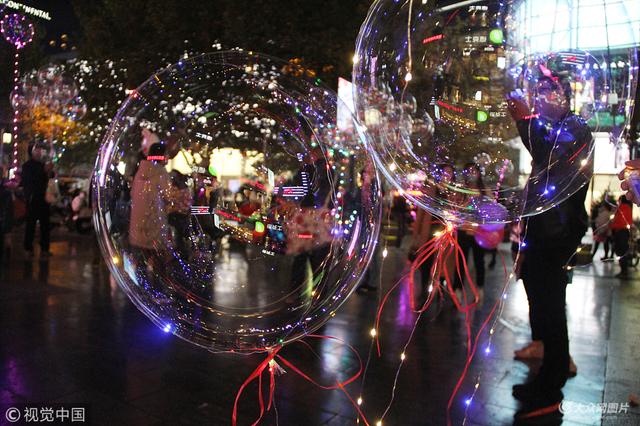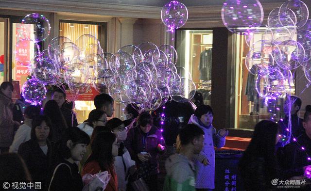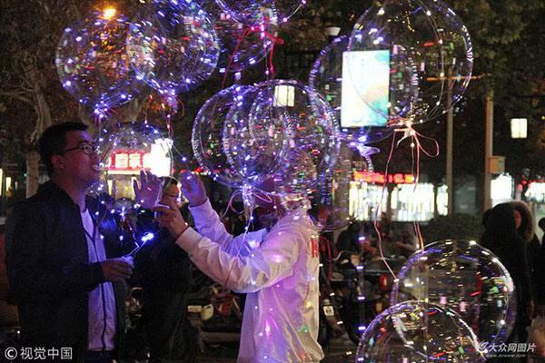 彩灯气球在济南泉城路上出现有一段时间了,目前还是相对比较火爆,很多有玩的年轻人尤其是小情侣都会买一只玩耍。尤其是晚上彩灯气球还是相对比较好看,五颜六色的彩色发光灯缠绕在气球上,泉城路上尤其是集中在芙蓉街那一小片区域很多小商贩开始兜售这种比较火爆的气球。