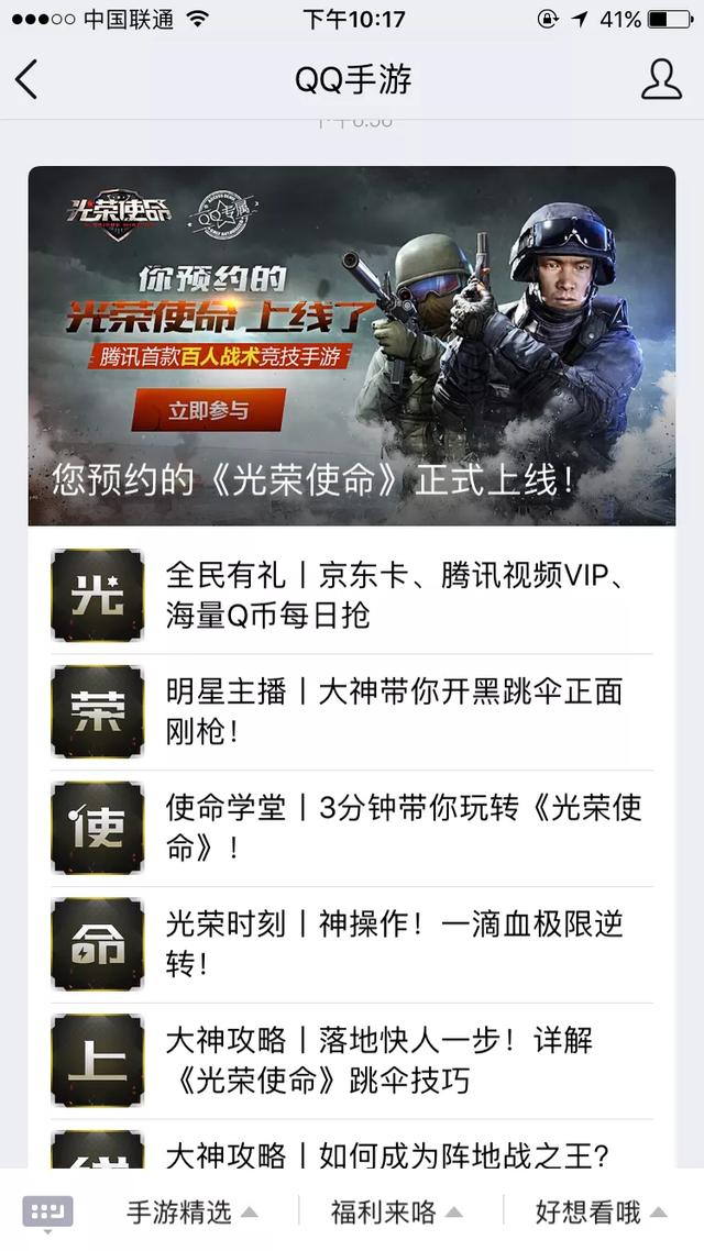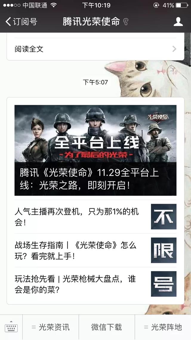 微信里则是进“腾讯光荣使命”公众号,直接有微信下载的。