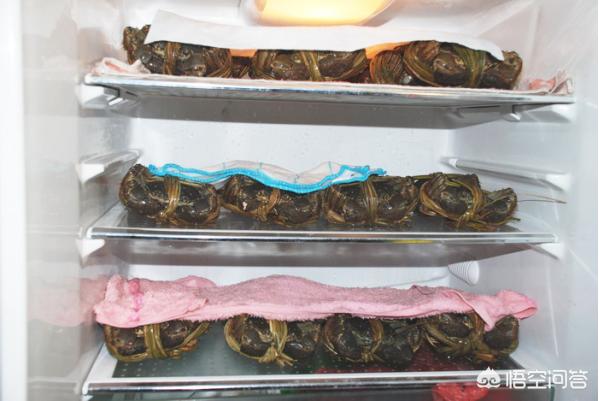 有时候我们把螃蟹买回家,一时半会儿不吃它,那么我们可以把它绑好,放进冰箱冷藏室,温度保持在5-8摄氏度,再在螃蟹背部覆盖一条湿毛巾。