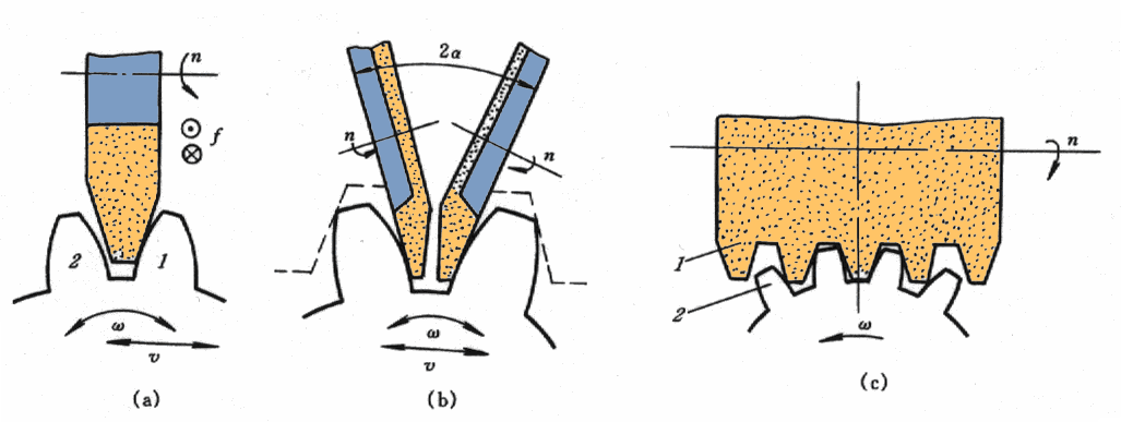 2.成形磨齿也属于成形法加工,因砂轮不易修整,使用较少。