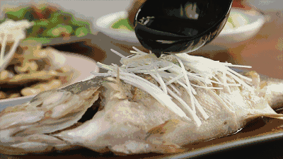 6、鱼的虚蒸:所谓虚蒸就是关火后,别打开锅盖,利用锅内余温再蒸5至8分钟后出锅,将备好的酱油、醋和少许清油淋遍鱼身即可。