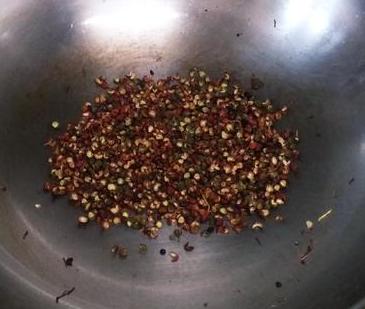 提示:这个时候炒出来的花椒等调料可以放入一个干净的容器内,等到之后用到的时候加入它们和刚买回来的没有什么区别。