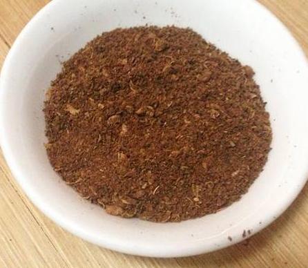 1.花椒30克,麻椒10克,去梗籽用20目筛子过一下,放入炒锅中炒至焦黄色时,倒入粉碎机中粉碎成细末。