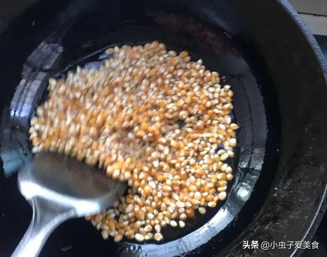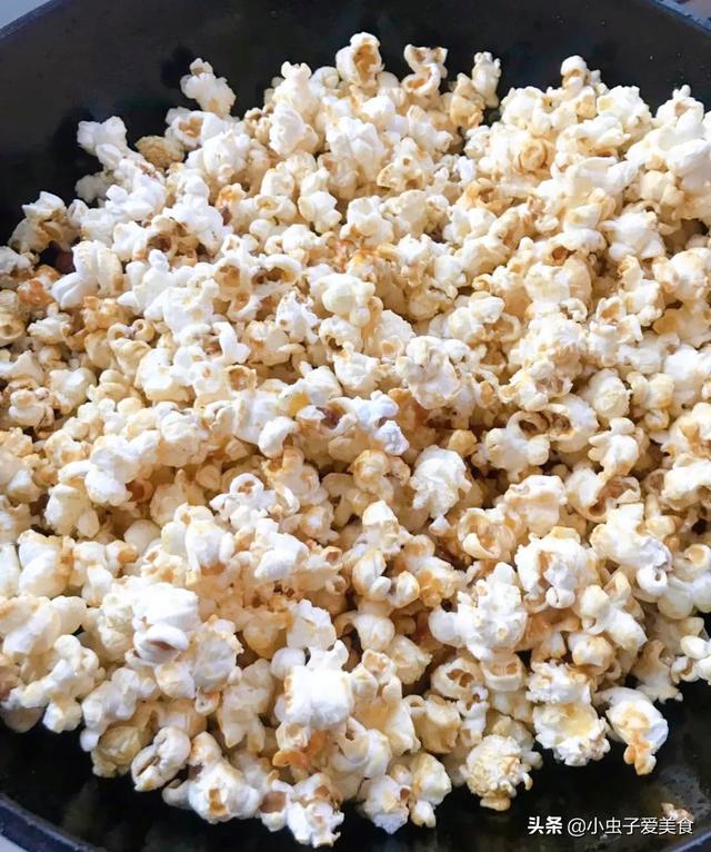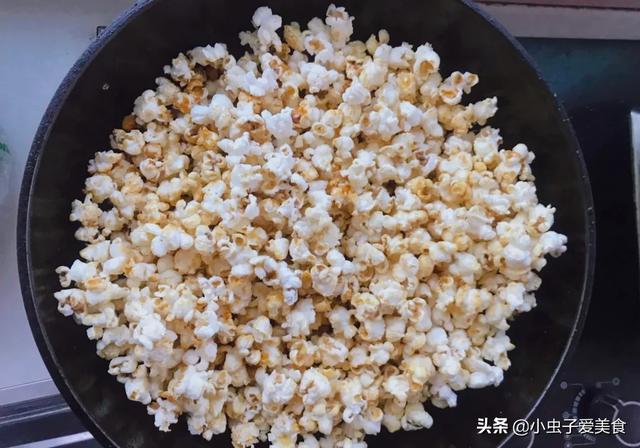 制作方法:1、锅中倒入玉米油(没味道的油都可);2、放入白糖,炒至化开;3、倒入玉米粒,掂锅让糖充分包裹住玉米粒;4、盖上锅盖,中小火按住锅盖继续掂锅,使玉米粒受热均匀;5、锅中玉米粒爆炸声没有了,开盖即可;6、刚出锅的爆米花尽量平铺晾凉;7、吃不完的爆米花要在还有一点余温时装袋保存,要不然再吃就会影响口感!