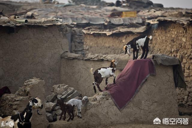 (在巴基斯坦贫穷的乡村,羊群可以上房)