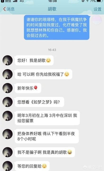 此外胡歌的心肠很好,前不久有个不幸患上白血病的网友在微博里表示自己的愿望是胡歌能够写一段话给她,结果胡歌就真的发私信给她,还赠送了她《如梦之梦》的话剧票↓