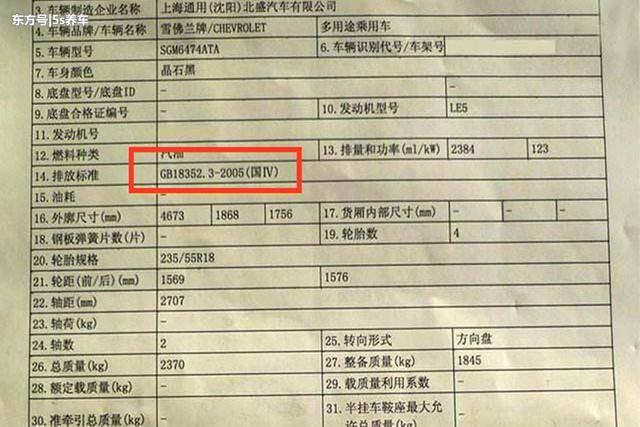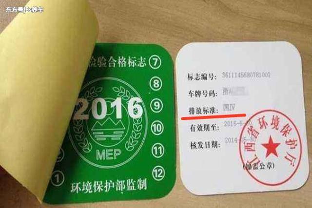 其次;可以从车辆上带有的标志性物来区分,最直观的有效区分标志物就是车辆环保标,从环保标标签的背面内容上,可以很轻松的了解到该车是属于国几的排放标准。