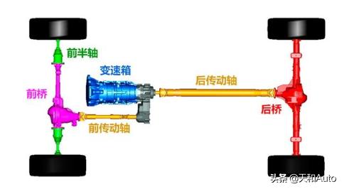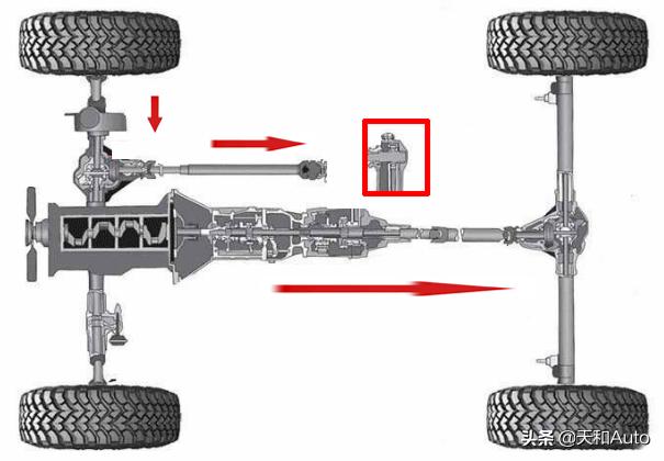 增加结构:连接变速箱取力器和后桥的传动轴,后桥分动机构与扭矩管理器。这些零部件看似不起眼但质量已经很大,即使四驱主传动轴是中空结构,但在需要保证结构强度足够高的前提下,传动轴也得有数十公斤到上百公斤不等;货车的传动轴也是空心,质量可以达到数百公斤哦。
