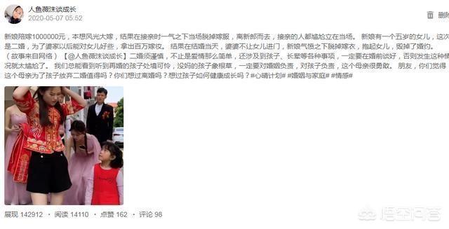 有许多人不相信这个故事,但这是条新闻,有图片的。这中间两个反转,一个是脱掉嫁服,一个是1000000元,留下太多的想象空间,大家都急于知道这到底是因为什么,感兴趣的朋友去我的微头条上面看到底是怎么回事。