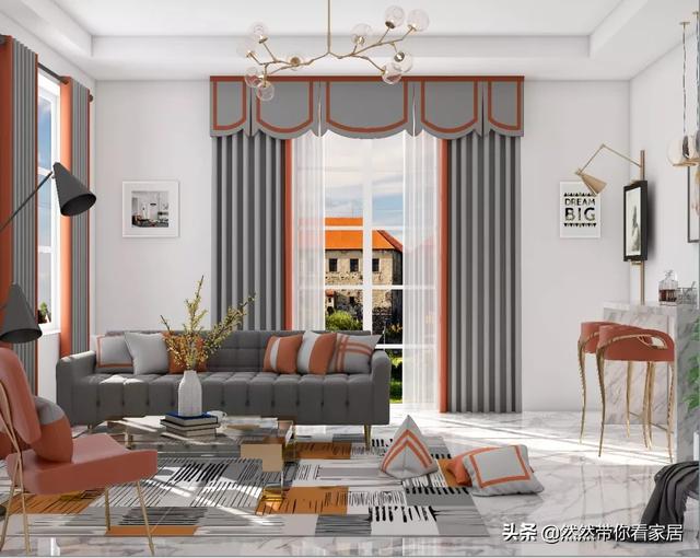 2.家具,装饰吊灯,柜体,窗帘为过度色。