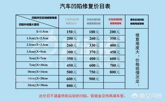 4. 汽车凹陷修复技术的收费标准?