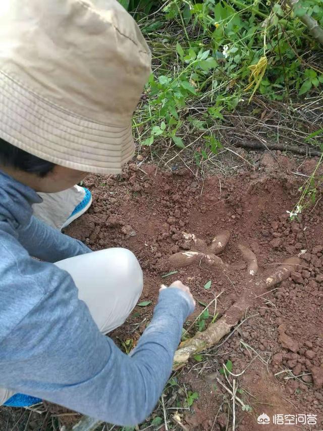 等差不多了,我们一拉,像鲁智深一样,哇哇,好大一串木薯,足够我们大快朵颐了,我们再接再厉,一口气把其它几棵木薯全部清理干净。