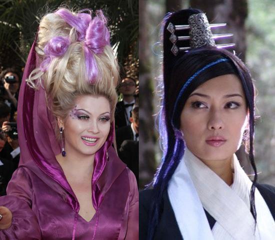 还有这个,李莫愁造型。明显发型高出半个头,可能是外国版李莫愁最近流行烫头。