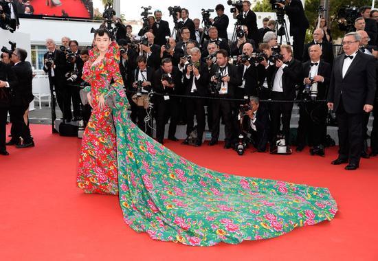 张馨予在2015年的戛纳红毯上穿起了东北的被子面儿,像是某村儿里跑出来招亲的招娣,看得人也是心疼没作品,还想走歪路搏出位的姑娘。