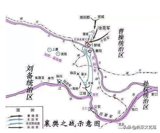 在汉中之战后,关羽见荆州北部动乱,于是想趁机夺取江北的荆州地界,便发动了赫赫有名的“襄樊之战”;关羽留南郡太守糜芳守卫江陵,将军傅士仁驻守公安,自己率领大军攻打襄阳的吕常和樊城的曹仁。曹操从汉中战场撤出后,立即派遣于禁督率三万大军救援樊城。