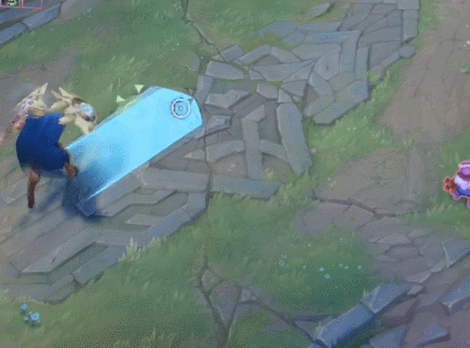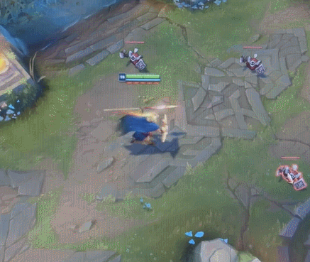 W技能依旧是跳跃眩晕,不过稍微有一些不同的是跳跃后会有一段连续的突刺,这个突刺很可能跟新的被动有关。因为我们已经看不到W技能释放后附带的护盾了。